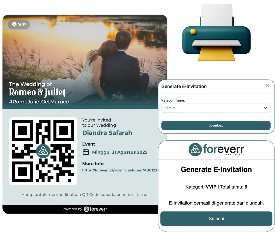 Mengutamakan keindahan desain dan kenyamanan layanan, Foreverr Invitation hadir untuk menciptakan undangan digital yang memukau. Dilengkapi Digital Guestbook dengan sistem Check-In menggunakan QR Code dan Layar Sapa yang tampil realtime, setiap undangan menjadi cerminan cerita istimewa Anda, dikemas dengan kemudahan dan pengalaman yang berkesan.